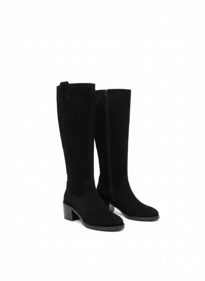 Elegantes botas altas negras con un tacón de 7 cm, un calzado nacional de la marca Corina