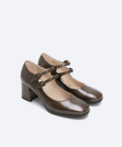 Zapato de mujer en piel charol color negro. Punta cuadrada y escote cuadrado. Con dos tiras en el empeine ajustable mediante hebillas metálicas. Un diseño confeccionado con tacón forrado al tono de 6 cm de altura y plataforma de 1 cm. Plantilla de piel y reforzado con una lágrima de gel para mayor comodidad. Suela TPU antideslizante. Un modelo muy elegante y de moda esta temporada.