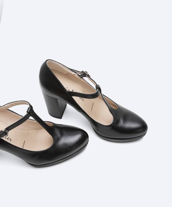 Zapato de salón de mujer modelo Salomé en piel lisa color negro. Punta redonda y escote redondeado. Cierre mediante hebilla lateral que te proporcionará mayor sujeción. Un modelo ideal para disfrutar con la mayor comodidad de Patricia Miller.