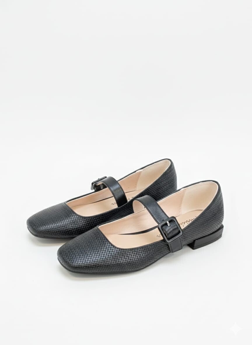 Mercedes en Crimea con 1 correa de mujer color Negro: El zapato plano que no pasa de moda y siempre suma elegancia.