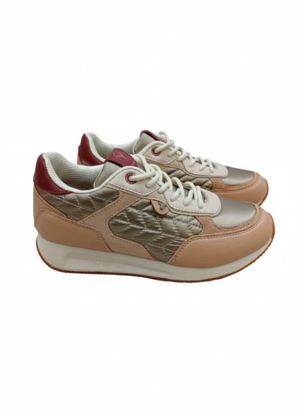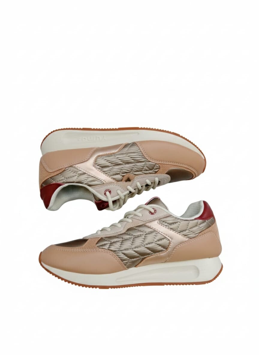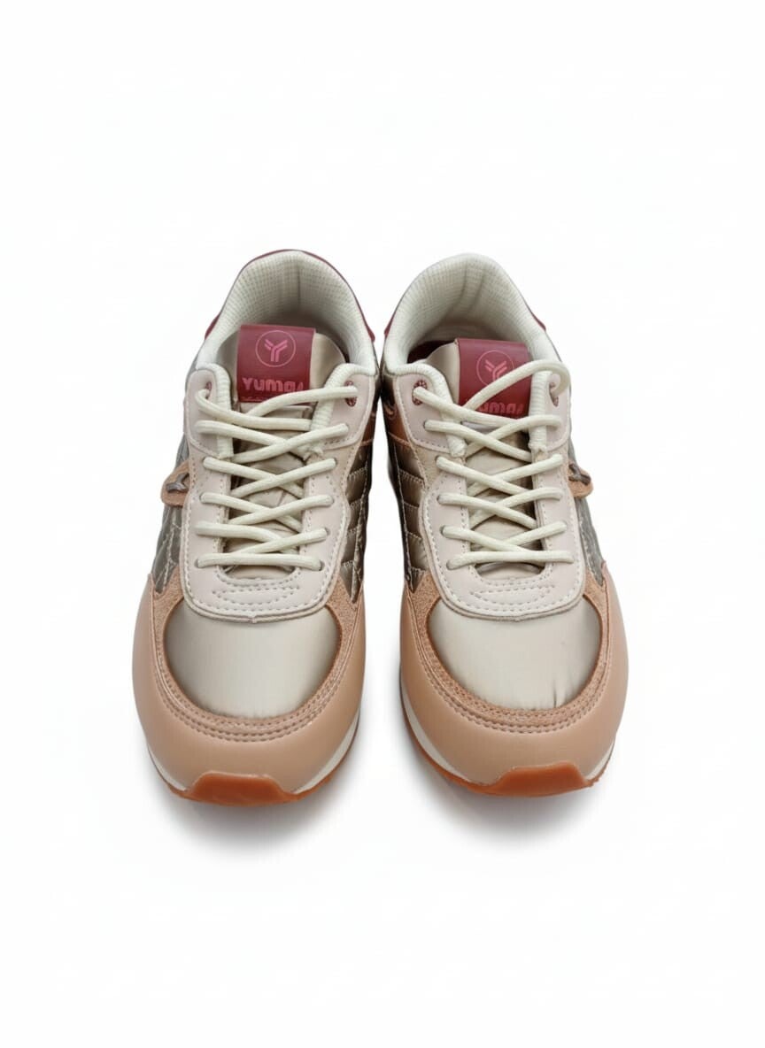 Zapatilla YUMAS cordones en color Camel, con puntera reforzada de piel. Estilo acolchado, fabricada en lona. Suela muy ligera y flexible.