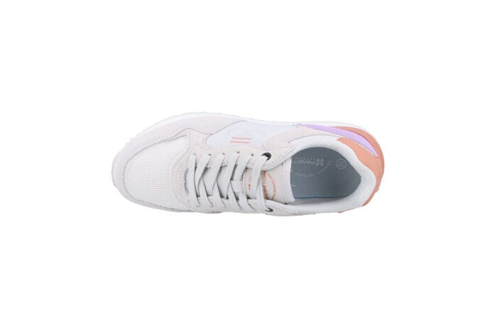 Con los tonos cálidos del atardecer barcelonés, TUSET Sunset transmite luz, suavidad y mucha personalidad. La combinación de blanco, lila y melocotón la convierte en una sneaker femenina, fresca y muy actual.